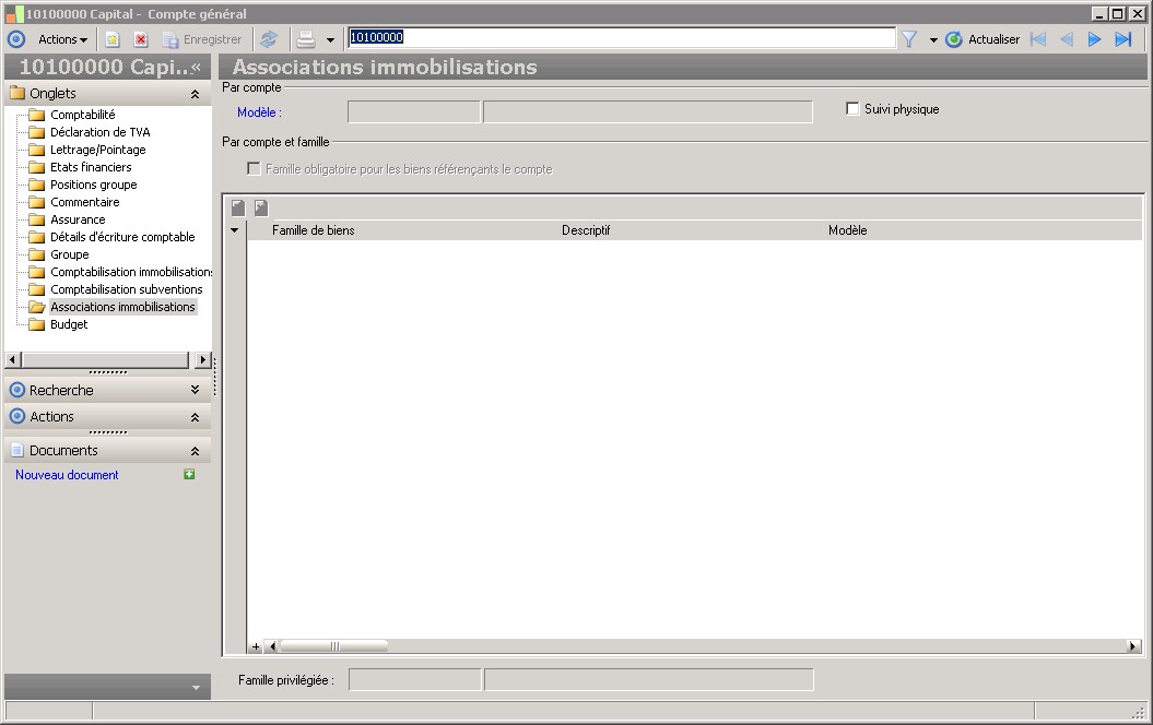 Il est possible d'associer une famille de bien privilégiée à un compte général. |