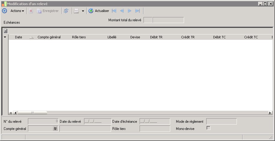 (Sage FRP 1000 Comptabilité) Menu Comptabilité > Echéancier > Encaissements > Modification d'un relevé