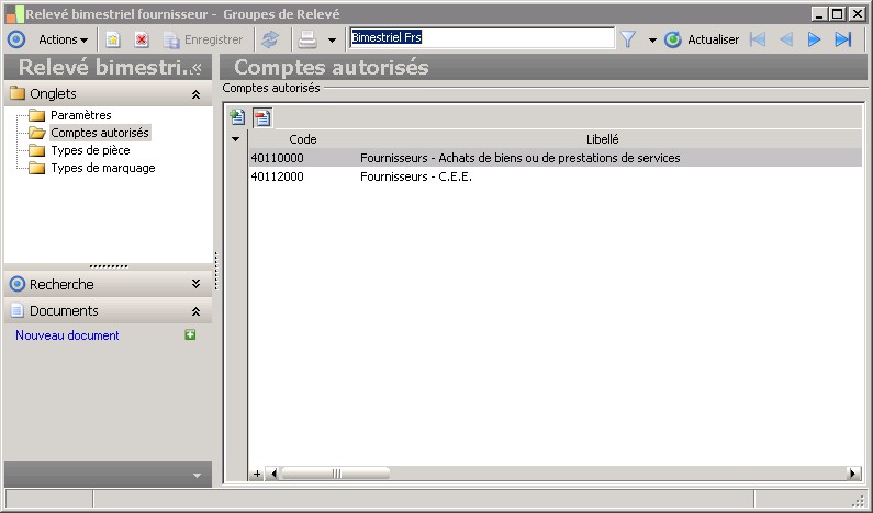 Permet de proposer un compte par défaut lors de la génération des relevés pour ce groupe de relevés.Il est possible lors du traitement de modifier la valeur proposée. |