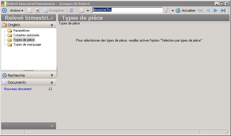 Cette option permet de sélectionner un ou plusieurs types de pièce à prendre en compte pour la génération des relevés. Si cette option est activée, il est obligatoire de sélectionner au moins un type de pièce.Uniquement les échéances correspondant aux types de pièce sélectionnés seront prises en compte par le traitement.Cette option ne peut pas être cumulée avec l'option "Relevé de factures". |