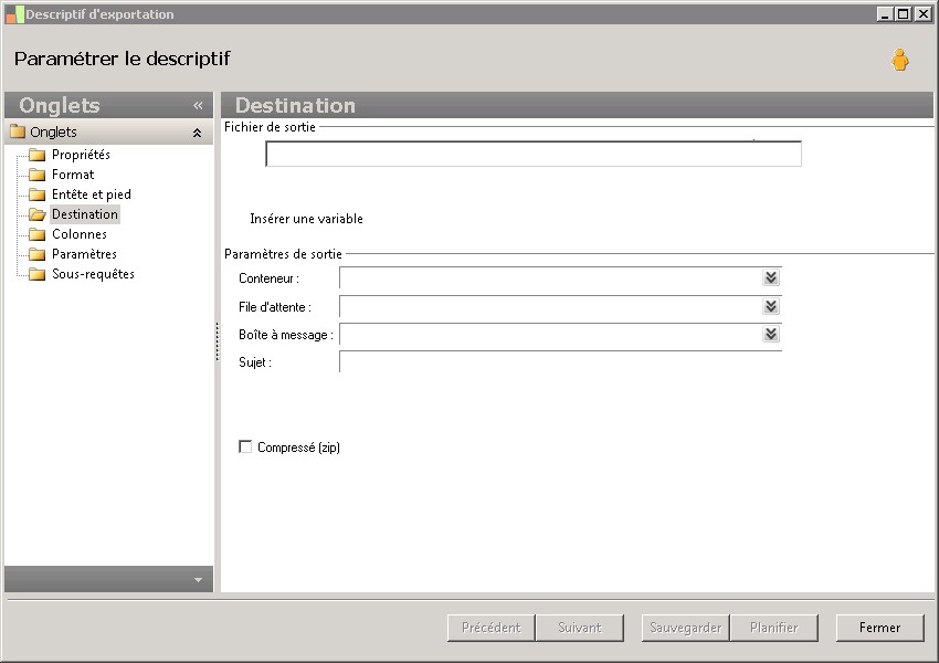 Paramètres de sortie |
