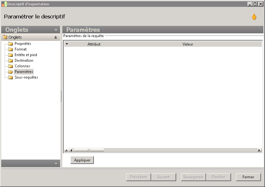 Paramètres de la requête |