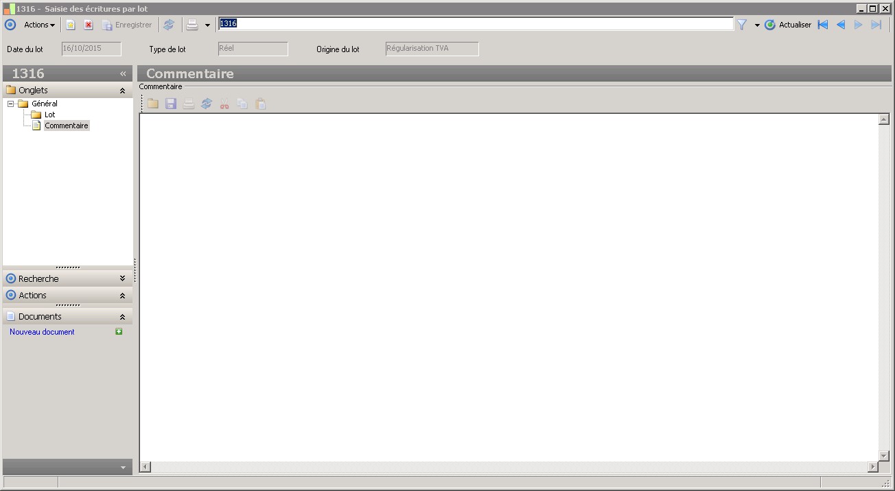 Le commentaire permet d'apporter des précisions sur le lot sous forme de texte. |