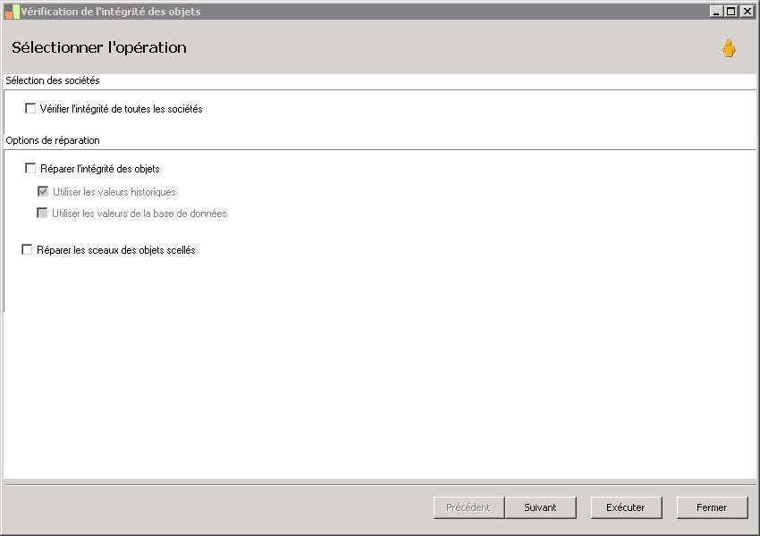 (Sage FRP 1000 Comptabilité) Menu Notes de Frais > Outils > Vérification de l'intégrité des objets