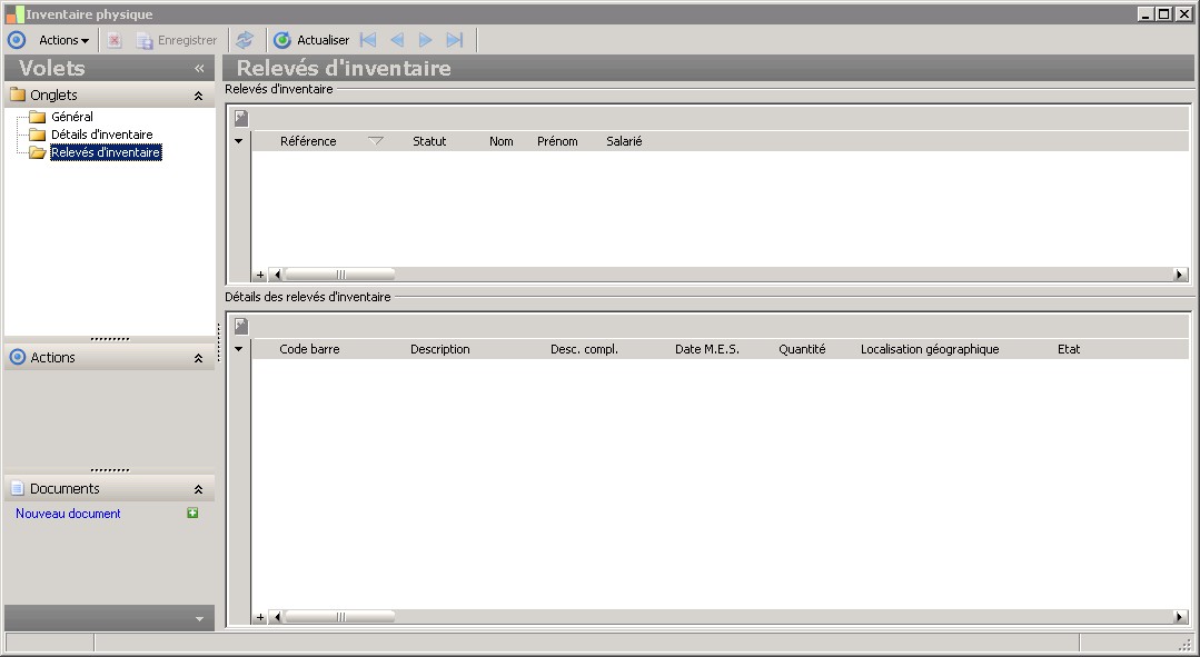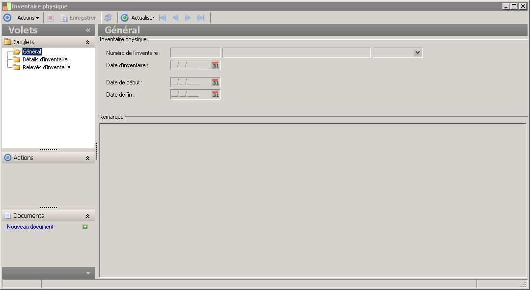 Cette zone indique le statut de l'inventaire. Cette information n'est jamais saisissable et est modifiable via une action dédiée. |