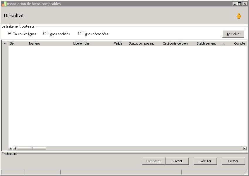 type de traitement : tous, sélectionné, non sélectionné. |
