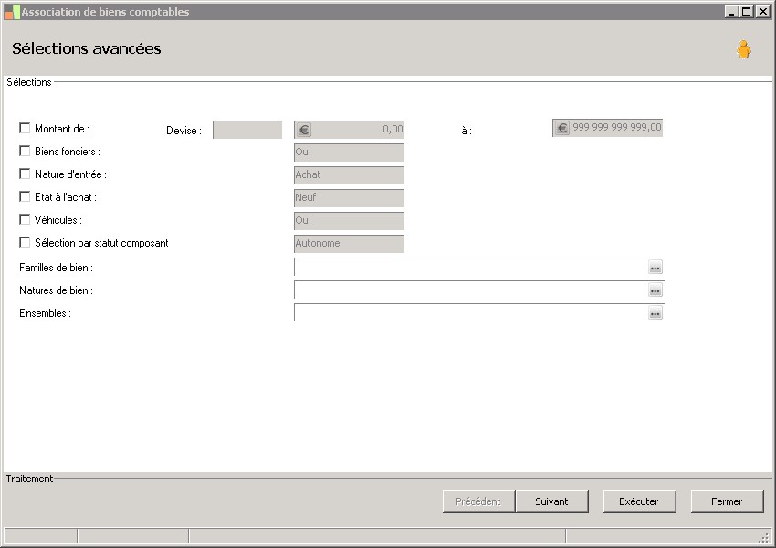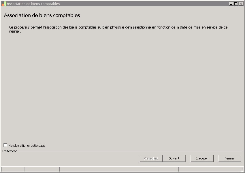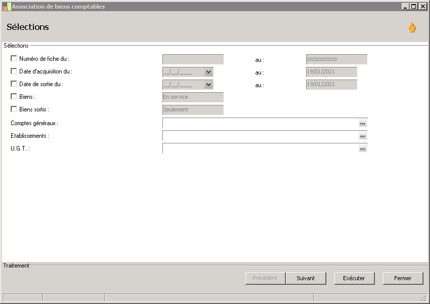 (Sage FRP 1000 Comptabilité) Menu Immobilisations > Suivi physique > Association de biens comptables