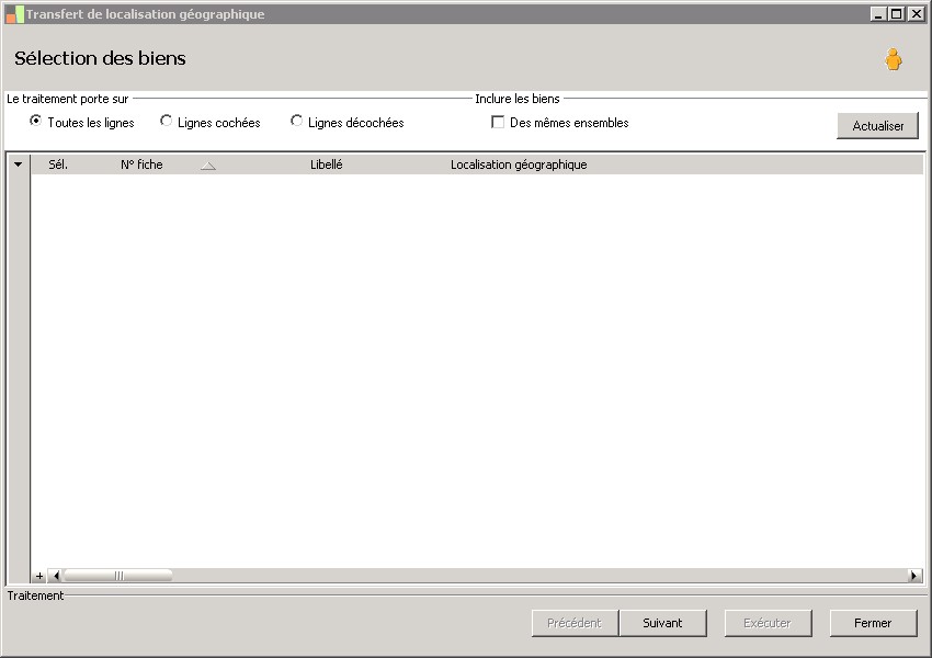 type de traitement : tous, sélectionné, non sélectionné. |
