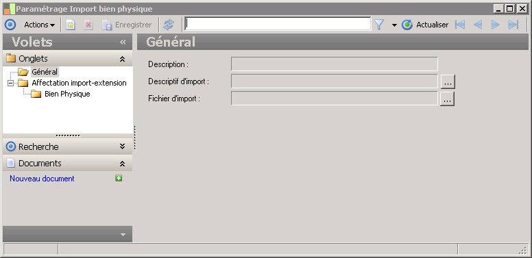 Cette zone permet de choisir le descriptif d'importation qui sera utilisé par ce paramètre d'import (traitement unitaire). |