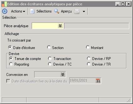 (Sage FRP 1000 Comptabilité) Menu Comptabilité Groupe > Générale > Edition des écritures analytiques par pièce