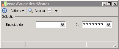 (Sage FRP 1000 Comptabilité) Menu Immobilisations > Paramètres > Comptabilité générale > Piste d'audit des clôtures