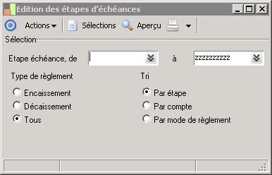 (Sage FRP 1000 Comptabilité) Menu Comptabilité > Paramètres > Echéancier > Edition des étapes d'échéances