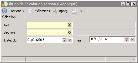 (Sage FRP 1000 Comptabilité) Menu Notes de Frais > Paramètres > Comptabilité analytique > Edition de l'évolution section (Graphique)