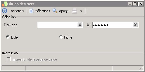 Il est possible d'éditer une liste des tiers ou de faire une édition fiche par fiche.