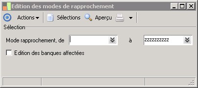 (Sage FRP 1000 Comptabilité) Menu Comptabilité > Paramètres > Banques > Edition des modes de rapprochement