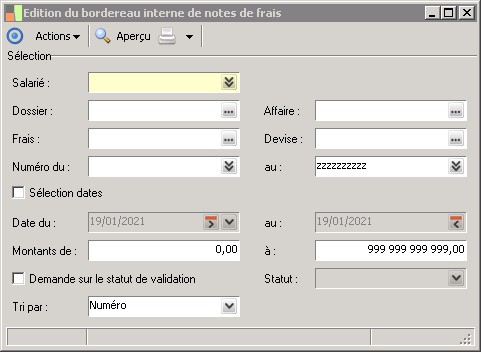(Sage FRP 1000 Comptabilité) Menu Notes de Frais > Analyses > Edition du bordereau interne de notes de frais