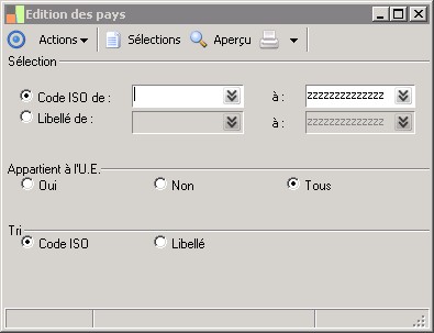 ouvre la fenêtre Lancement de l'édition des pays .Présentation