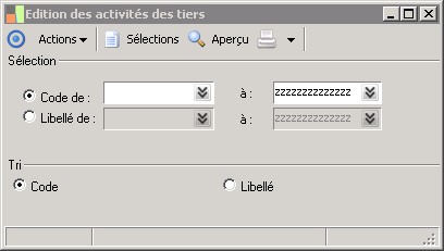 Indiquer le code activité tiers inférieur de la tranche d'activités tiers souhaitée.