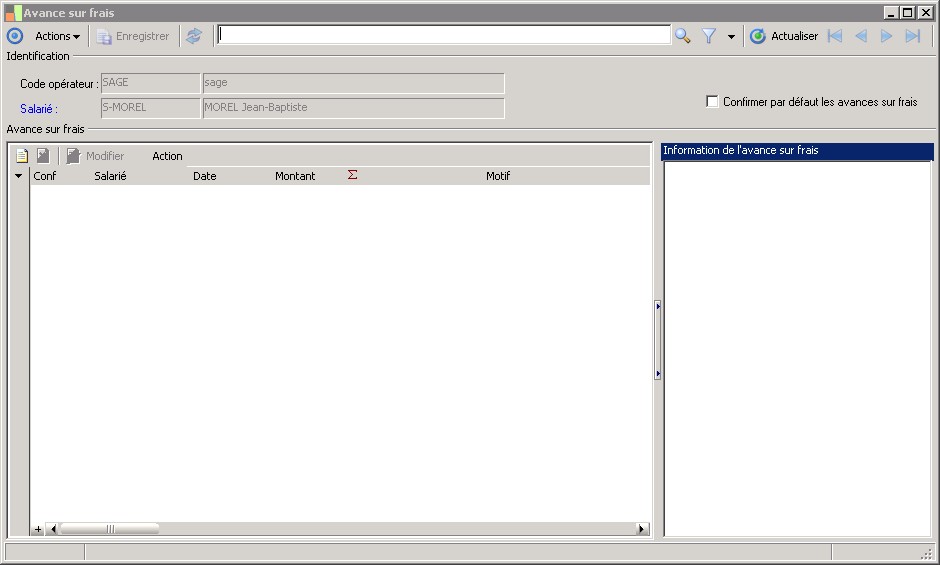 (Sage FRP 1000 Comptabilité) Menu Notes de Frais > Avances sur frais > Avance sur frais