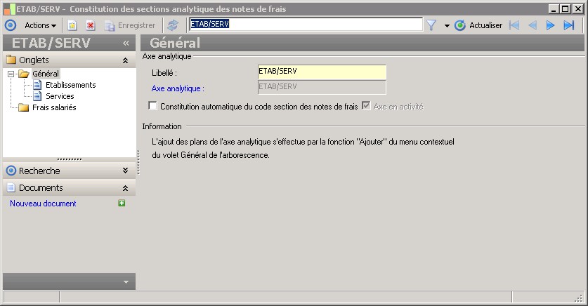 Cette zone permet d'indiquer si la détermination du code section (concaténation des différents centres analytique à raison d'un centre par plan analytique de l'axe) est automatique ou non.- Lorsque cette case n'est pas cochée, il n'y a pas de ventilation analytique.- Lorsque cette case est cochée, la détermination du code section en saisie de notes de frais est automatique et s'effectue sur la base de (des) l'attribut(s) défini(s) dans la zone "Information reprise en tant que valeur de centre analytique". |