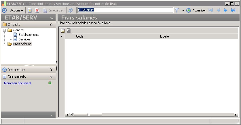 (Sage FRP 1000 Comptabilité) Menu Notes de Frais > Fichiers de base > Constitution des sections analytique des notes de frais