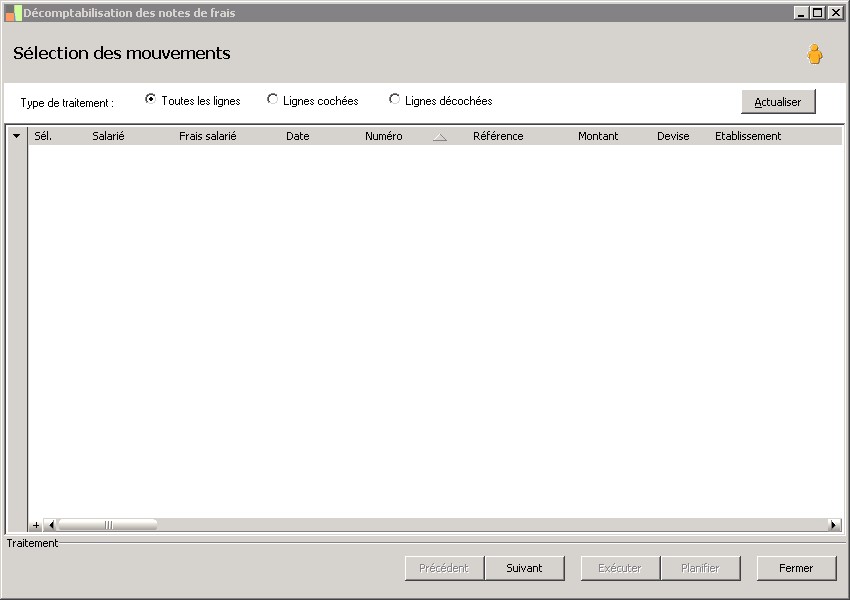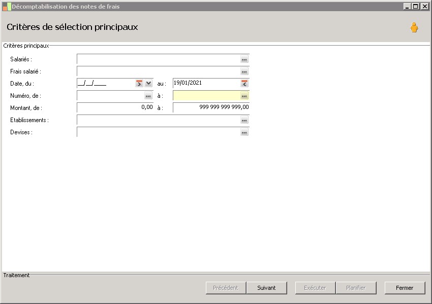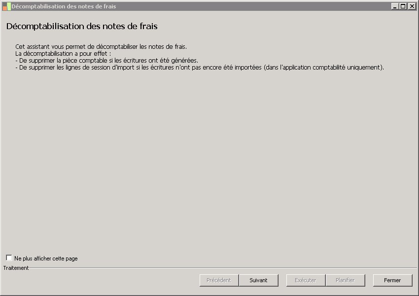 (Sage FRP 1000 Comptabilité) Menu Notes de Frais > Outils > Décomptabilisation des notes de frais