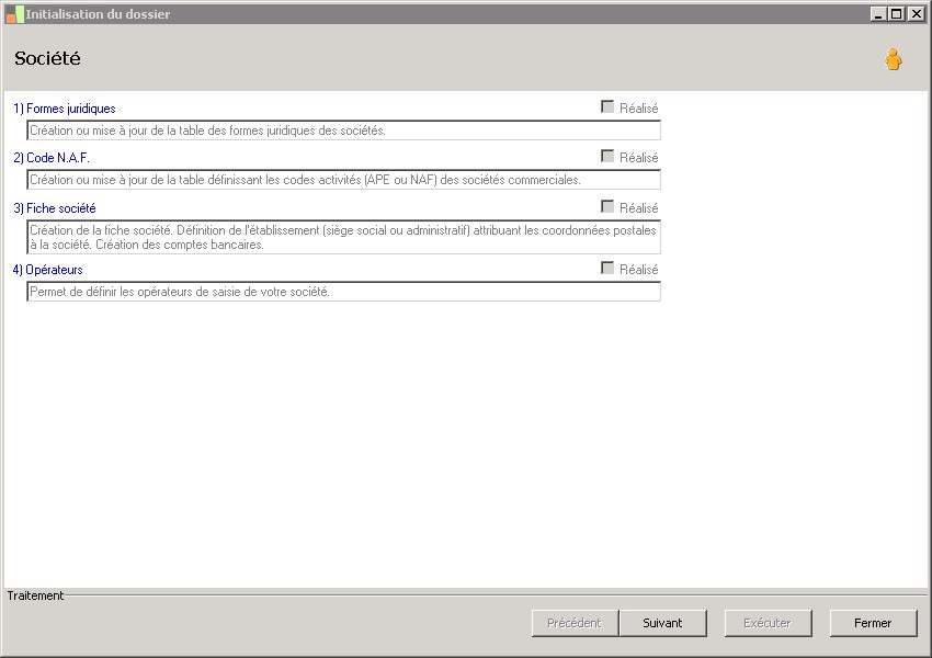 Indique que la table des formes juridiques a été renseignée : case à cocher par l'utilisateur pour connaître l'état d'avancement dans le paramétrage de la société. |