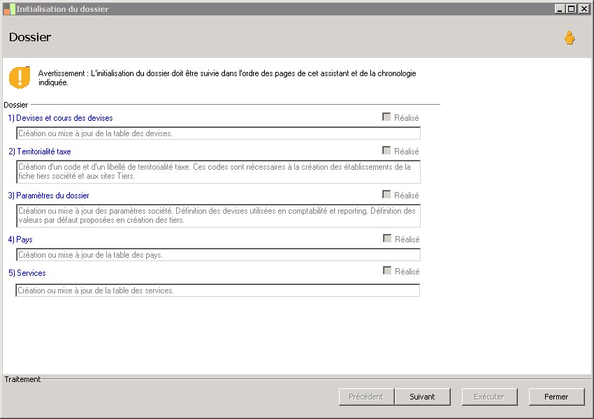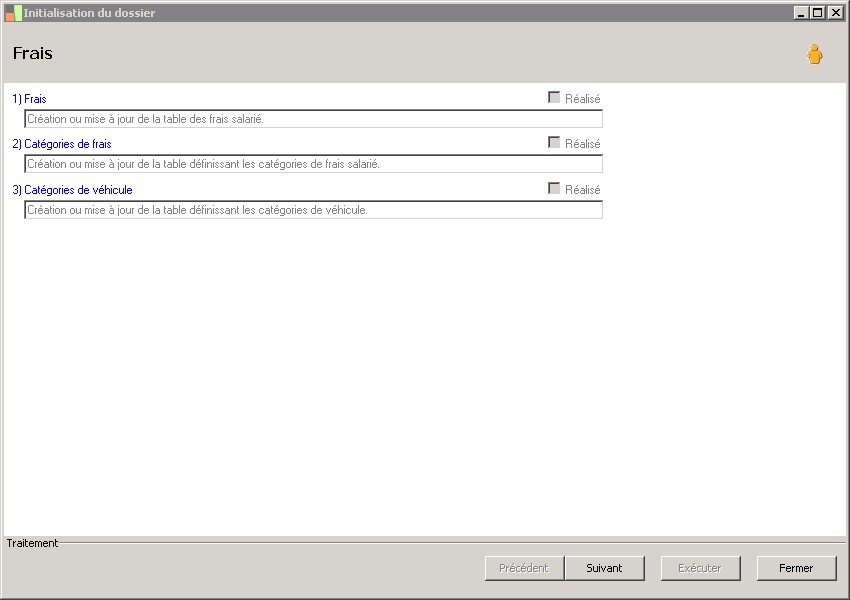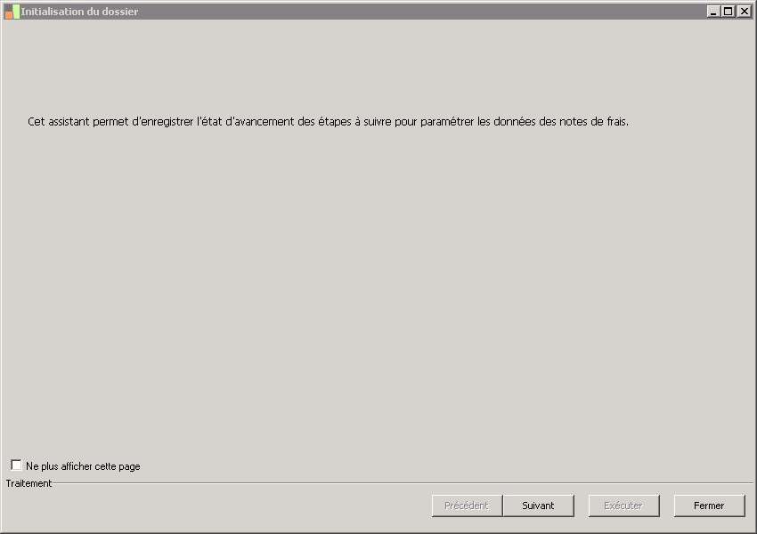 (Sage FRP 1000 Comptabilité) Menu Notes de Frais > Outils > Initialisation du dossier