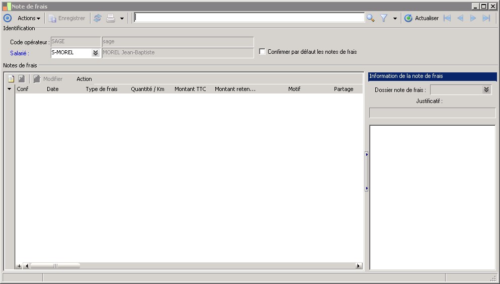 (Sage FRP 1000 Comptabilité) Menu Notes de Frais > Notes de frais > Note de frais