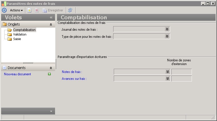 Un descriptif d'importation d'écritures pour les notes de frais peut être rattaché au paramètre des notes de frais. |