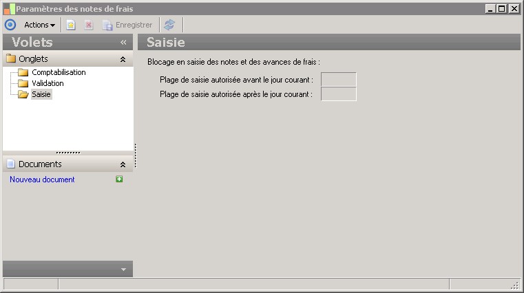 Cette information permet d'autoriser une plage de saisie pour les avances et les notes de frais. Il s'agit du nombre de jours avant la date système pour lesquels il sera possible de saisir une avance ou une note de frais. |