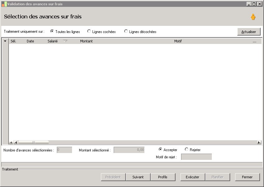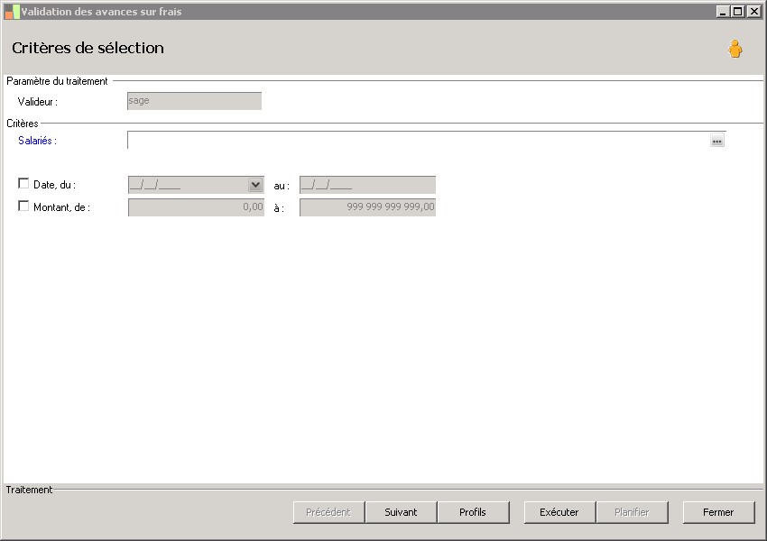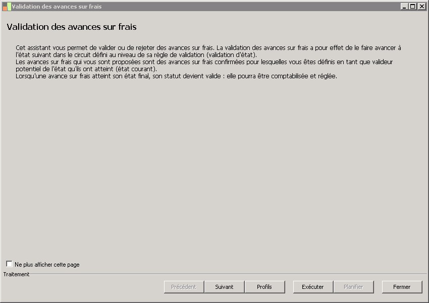 (Sage FRP 1000 Comptabilité) Menu Notes de Frais > Avances sur frais > Validation des avances sur frais