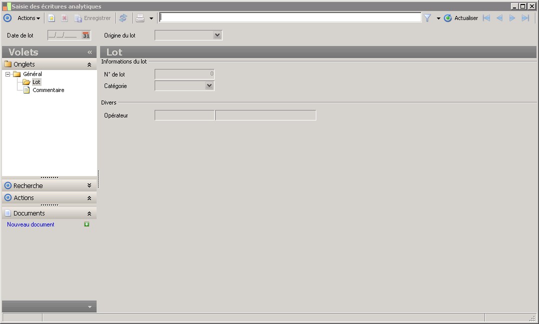 Il existe deux catégories de lot :- Exploitation : pour les lots contenant des pièces d'exploitation.- Retraitement : pour les lots contenant des pièces de nature nationale ou IAS / IFRS.Cet attribut a pour but de ne pas mélanger les pièces selon le mode de saisie utilisé(Exploitation ou Retraitement). |