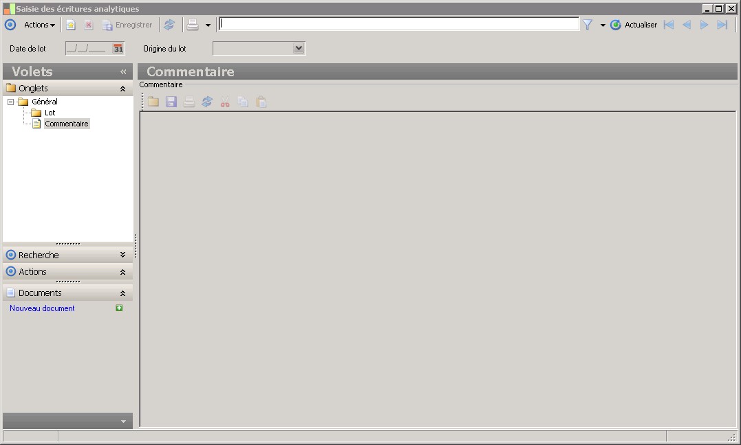 Chaque lot est numéroté. Les formats des compteurs des lots, des pièces et des écritures sont numériques et non modifiables. Tous les compteurs sont incrémentés automatiquement. Si un lot est créé et que les pièces ne sont ni validées ni supprimées, le numéro du lot n'est plus disponible. |