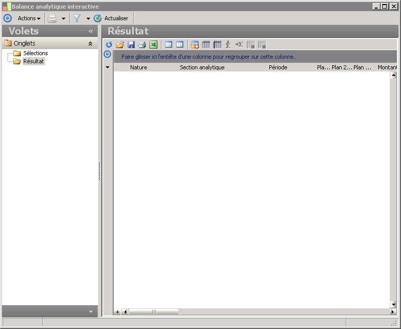 Par défaut, la balance est présentée avec des ruptures par Centre analytique, Section analytique, Nature de flux et Période, mais vous pouvez modifier à votre convenance cette présentation.