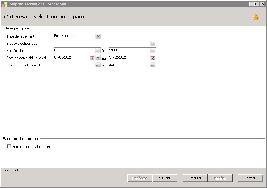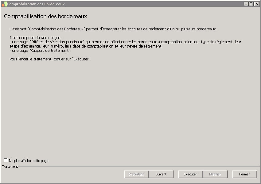 (Sage FRP 1000 Suite Financière) Menu Comptabilité > Echéancier > Comptabilisation des Bordereaux