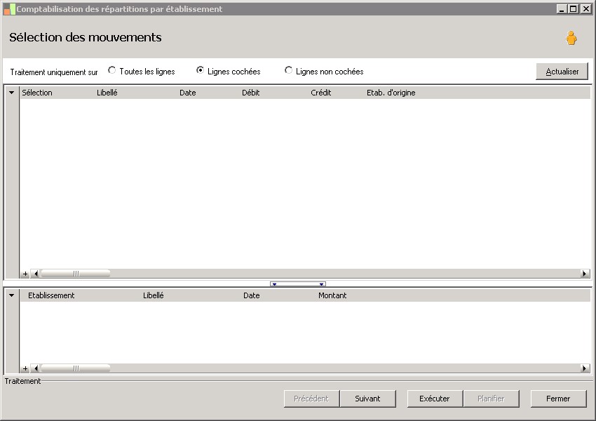 Le bouton Actualiser lance la recherche des répartitions à comptabiliser.