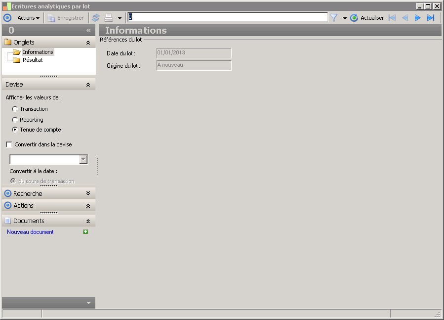 L'origine du lot analytique permet de déterminer si le lot est issu d'une saisie ou d'un traitement automatique (Cas des déversements par exemple). |