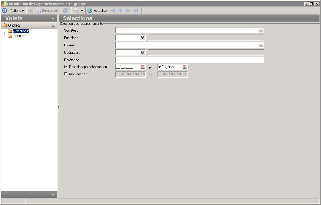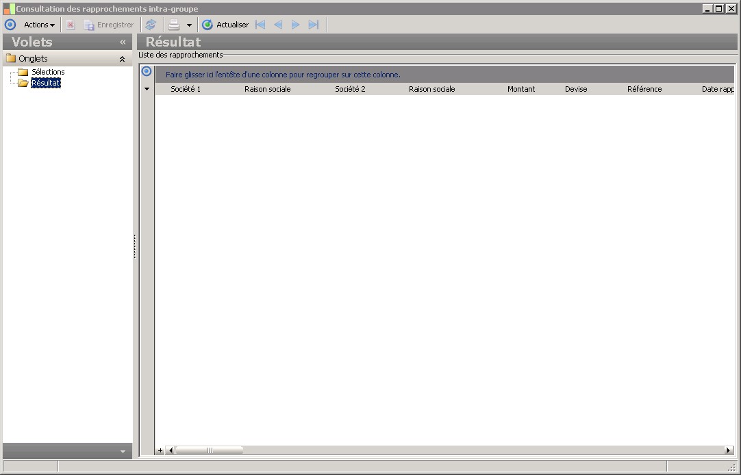 (Sage FRP 1000 Suite Financière) Menu Comptabilité Groupe > Générale > Rapprochement intra-groupe > Consultation des rapprochements intra-groupe