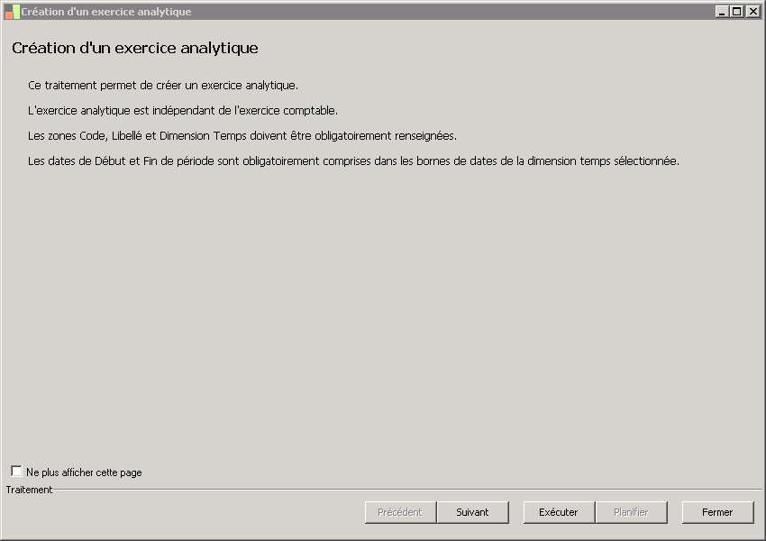 (Sage FRP 1000 Suite Financière) Menu Comptabilité > Paramètres > Comptabilité analytique > Création d'un exercice analytique