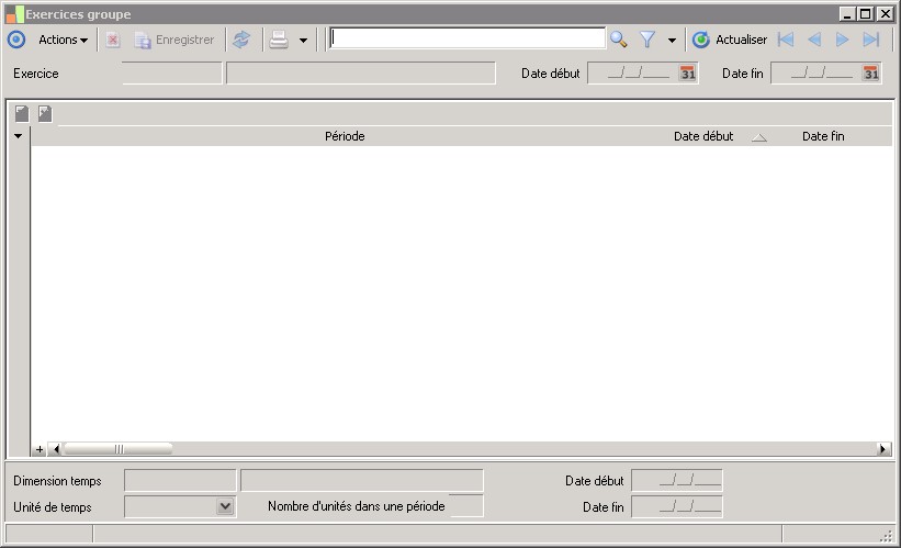 Le code identifie l'exercice de façon unique.Les exercices utilisent les périodes de la dimension temps préalablement créée.On peut avoir autant d'exercices que nécessaire, dans la limite de la dimension temps. |