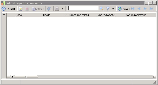 (Sage FRP 1000 Suite Financière) Menu Comptabilité > Paramètres > Echéancier > Liste des quotas bancaires