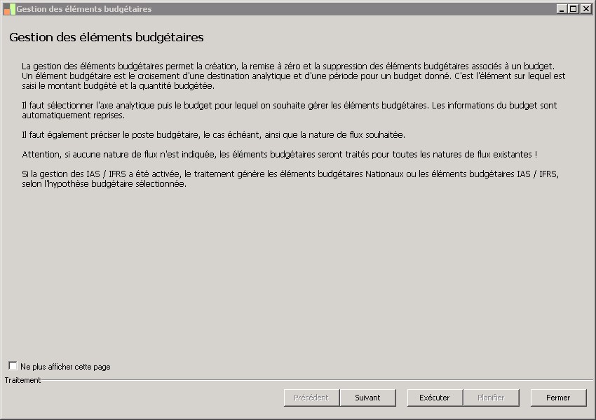Si la gestion des IAS / IFRS a été activée, le traitement génère les éléments budgétaires Nationaux ou les éléments budgétaires IAS / IFRS, selon l'hypothèse budgétaire sélectionnée.