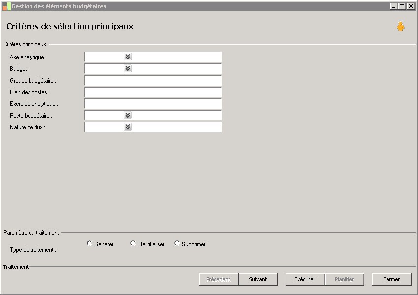 La gestion des éléments budgétaires permet la création, la remise à zéro et la suppression des éléments budgétaires associés à un budget.