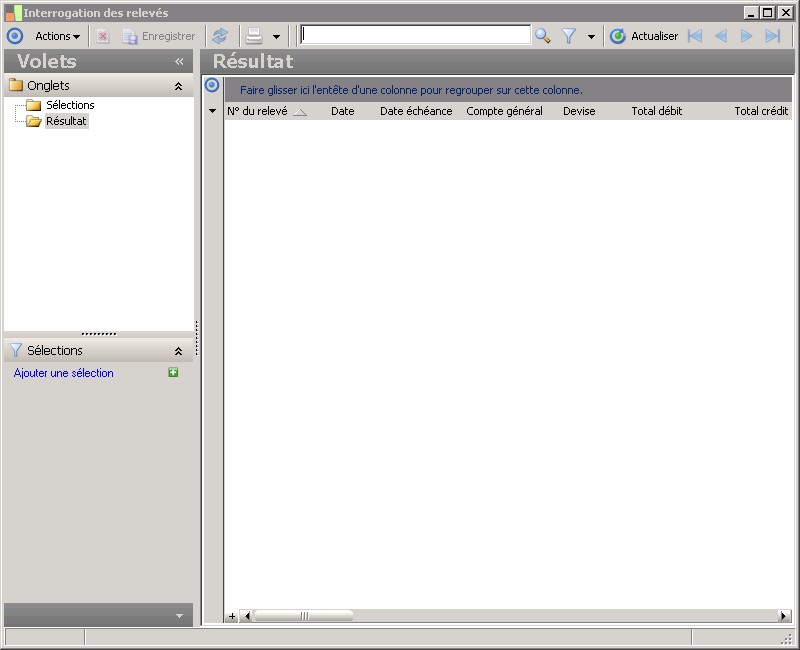 (Sage FRP 1000 Suite Financière) Menu Comptabilité > Echéancier > Décaissements > Interrogation des relevés