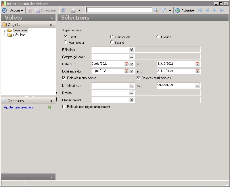 Lorsque cet attribut est activé, cela signifie que le relevé a été généré en devise de transaction et qu'il ne contient que des échéances dans cette devise.Sinon le relevé est multi-devises et ces montants sont donc exprimés en devise de tenue de compte. |