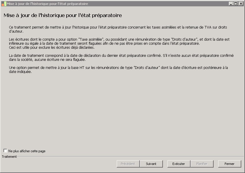 Si la case est cochée, cette fonction complémentaire permet de mettre à jour le montant de la base HT sur les rémunérations de type "Droits d'auteur" dont la date d'écriture est postérieure à la date renseignée. |