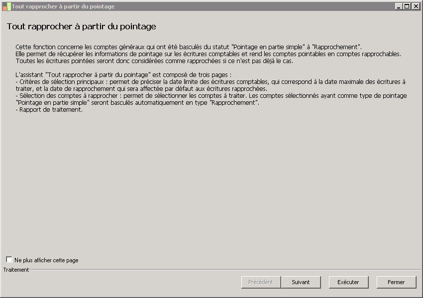 (Sage FRP 1000 Suite Financière) Menu Comptabilité > Générale > Rapprochement > Tout rapprocher à partir du pointage