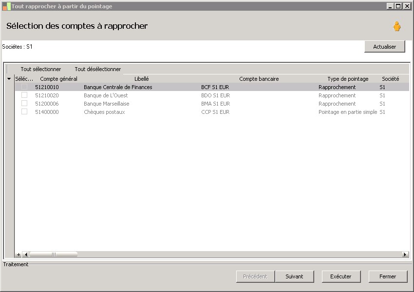 Cette option permet de sélectionner les critères par entité :- Sociétés.- Banques.- Comptes. |