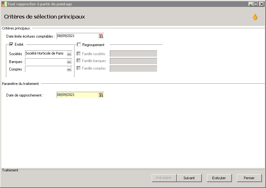 Cette option permet de sélectionner les critères par regroupement :- Familles sociétés.- Familles banques.- Familles comptes. |